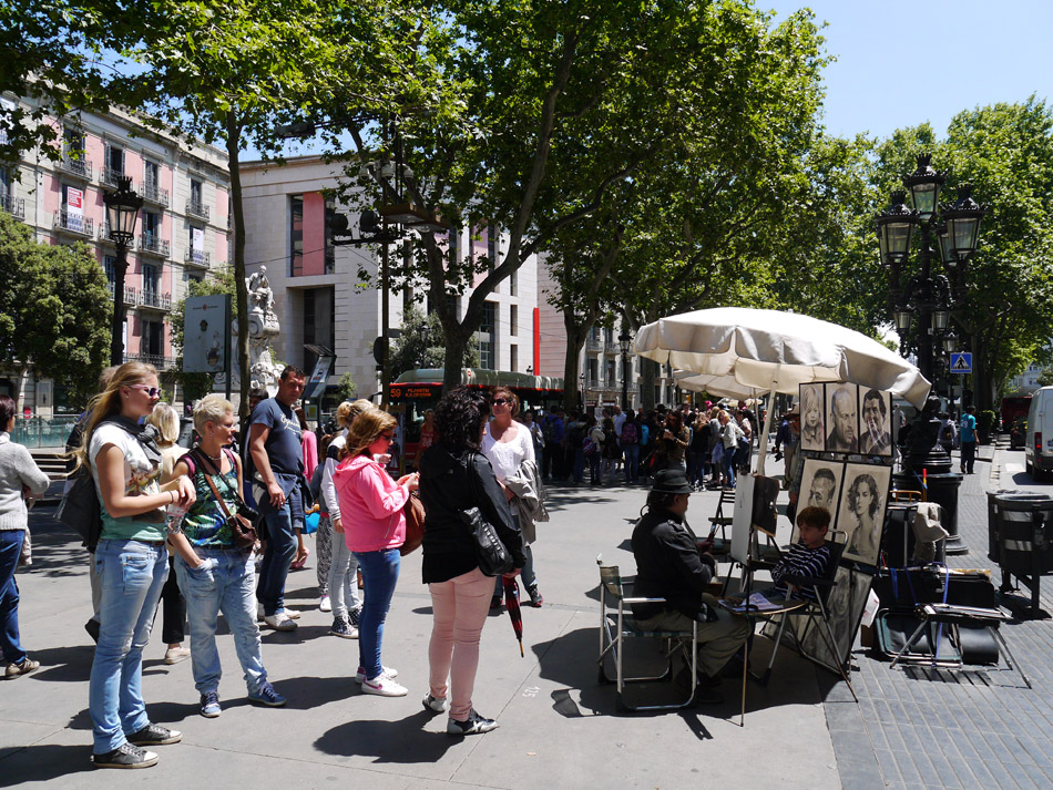 Aan de overzijde van de rotonde ligt het begin van de beroemde straat La Rambla, beter bekend als de Ramblas.