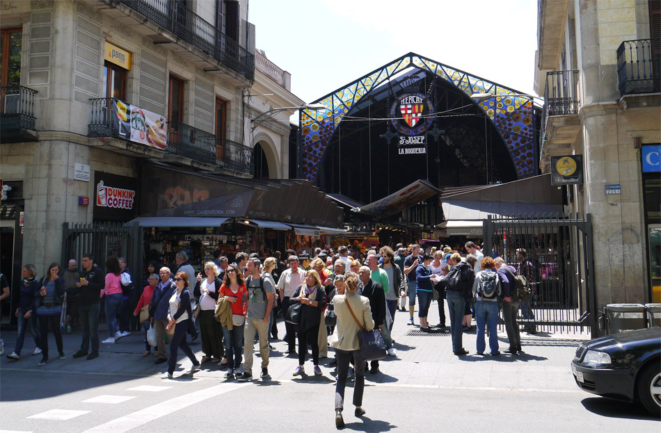 Nadat je bent bijgekomen van alle geuren en smaken, verlaat je de markt aan de achterzijde. Vanaf daar loop je zo naar het MACBA.