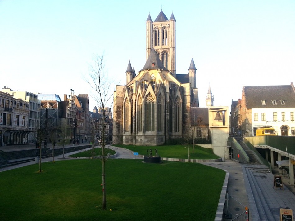 De ‘Gentse torenrij’ bestaat uit de 95 meter hoge belforttoren, de Sint-Niklaaskerk en deze Sint-Baafskathedraal.