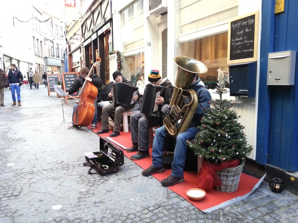 Tijdens de wintermaanden zorgt niet alleen de kerstverlichting, maar ook een groep straatmuzikanten voor wat extra sfeer.