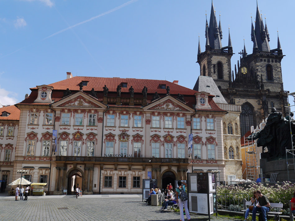 De Nationale Galerij (links) en Tynkerk (rechts) op het Plein van de Oude Stad.