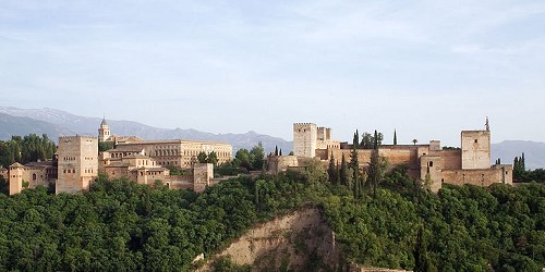 Het Alhambra, dat Rode Paleis betekent, is een middeleeuws paleis en fort van de Moorse heersers van het Koninkrijk Granada in het Zuid-Spaanse Andalusië. De bouw van La Alhambra de Granada begon rond de 9e eeuw na Christus, maar begon pas rond 1350 de vorm van paleis aan te nemen. Met 142,000 vierkante meter is het een enorm complex, dat onder andere voorzien is van verschillende paleiszalen en 13 enorme torens.