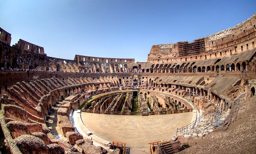 In het jaar 72 na Christus werd begonnen met de bouw van het Romeinse Colosseum. Oorspronkelijk heette het Amphitheatrum Flavium, wat ‘Het amphitheater van Flavius’ betekent. Naar schatting overleden ongeveer een half miljoen mensen en een miljoen wilde dieren in dit enorme theater, dat enkel voor de show van de rijken diende. Ondanks meerdere zware aardbevingen en oorlogen staat het grootste gedeelte van het Colosseum nog steeds overeind.