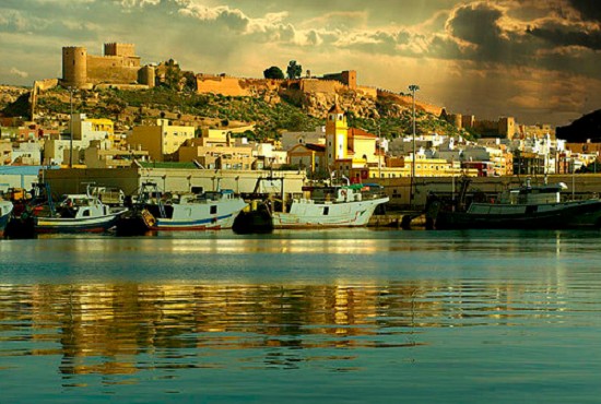 De haven van Almería, met daarboven de Alcazaba, via Jesus Quiles Galindo