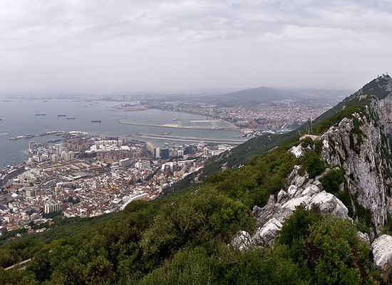 Gibraltar (links) vanaf de Rots, met Spanje op de achtergrond, via Luciphoto