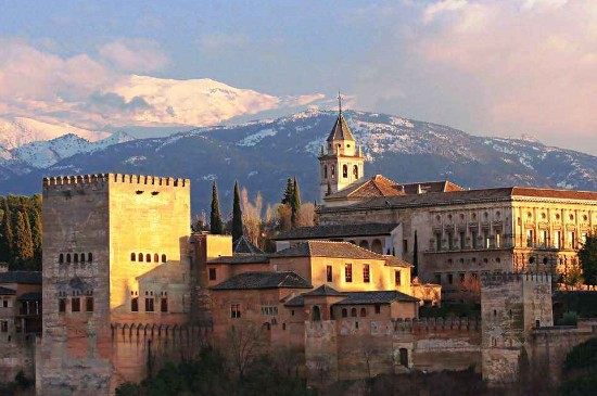 Het sierlijke Alhambra in contrast met de ruige Sierra Nevada, via Ingrid Marquez