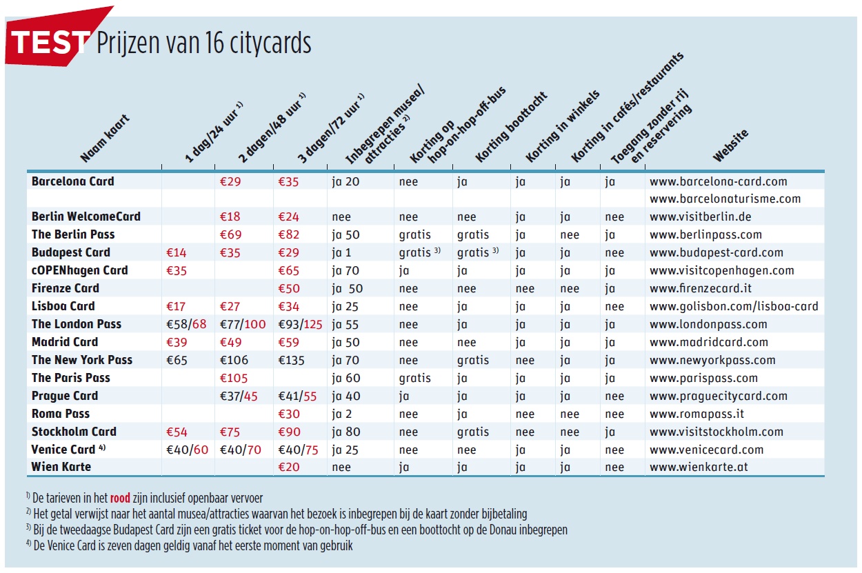 Ga voor de aanschaf goed na of je de kaart eruit haalt. Het goedkoopst zijn de kaarten die gesubsidieerd worden door de VVV, de commerciële aanbieders zijn een stuk duurder. Ook zijn er flinke verschillen in wat de kaarten bieden. Zo is bij de Berlin WelcomeCard en de Wien Karte geen enkele entree inbegrepen: ze bieden alleen korting.