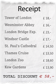 De London Pass zonder openbaar vervoer kost voor drie dagen 77 pond (€98). Dus bij een bezoek aan die topattracties kom je ruim uit de kosten. Bovendien biedt de London Pass gratis entree en kortingen voor heel veel andere bezienswaardigheden in Londen, stadswandelingen en -tours en in veel winkels, bars en restaurants.