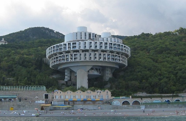 Het heeft wat weg van een observatieplatform van de sterrenwacht en de Amerikanen dachten zelfs dat het een raketbasis was. Het is echter een kuuroord in de Oekraïense badplaats Yalta en het pronkstuk van het Sovjettoerisme van de jaren ’80. Via Argenberg.