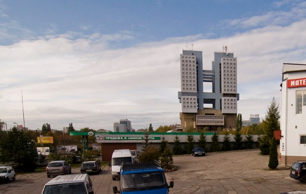 Een typisch staaltje moderne (2006) Oost-Europese architectuur: een hoekig blok beton, omlijst door veel glas. Via Natashazabota.