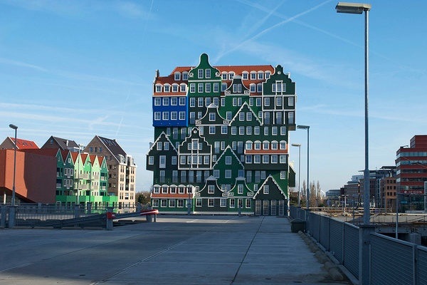 Als Zaandam zou kunnen niezen, zou het plaatselijke Inntel Hotel het resultaat van de niesbui zijn. Via Bart van Damme.