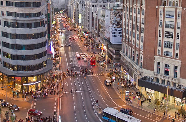 Winkelstraat Gran Via in Madrid, via Javier Corbo