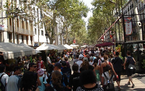 Op de Ramblas in Barcelona is het altijd druk, via Hordedog