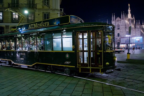 Voor een mooi en veelzijdig uitzicht hoef je uiteraard niet naar grote hoogten af te reizen. Dat je ook op grondniveau goed eten en een mooi uitzicht kunt combineren bewijst het Milanese restaurant ATMosfera. Dit restaurant bevind zich namelijk in een tram, die zes dagen per week een rondrit van zo’n 2,5 uur door Milaan maakt. Echt fastfood dus! Opstappen en uitstappen kan om 19:45 op Piazza Castello, een ’tramkaartje’ kost €50,-.