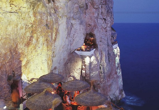 Op het Spaanse eiland Menorca, in het piepkleine plaatsje Cala’n Porter, kun je lunchen en dineren bij Cova d’en Xoroi. Deze bar annex restaurant bevindt zich in de grotten van een klif, waarbij je kunt genieten van een prachtig uitzicht over de Middellandse Zee.