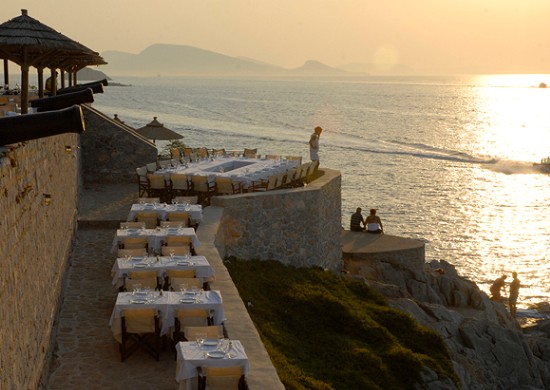 De naam van Restaurant Sunset op het Griekse eiland Hydra is niet voor niets gekozen. Het restaurant is gevestigd op de rotsen, en vanuit je stoel tuur je zo over de Egeïsche Zee, om de zon achter één van de vele kleine Griekse eilandjes te zien verdwijnen. Het is dan ook niet verwonderlijk dat Restaurant Sunset populair is bij stelletjes, zowel voor diners als voor bruiloften.
