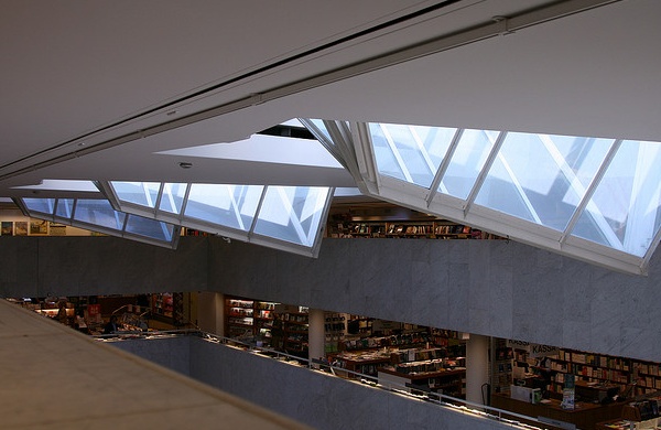 Onder meer winkels in Maastricht, Brussel en Amsterdam werden onlangs geroemd in een overzicht met de mooiste boekenwinkels ter wereld. Uiteraard zijn er nog veel meer prachtige plekken om nieuwe boeken aan te schaffen, maar een boekenwinkel die naar ons idee niet had misstaan in de lijst is Akateeminen Kirjakauppa in het Finse Helsinki. Het strakke interieur en markante daklijnen van de Academische Boekenwinkel werden in 1966 geselecteerd uit vele inzendingen voor een designwedstrijd. Foto via Lybian Soup.
