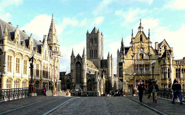 De Sint Michielsbrug is één van de meest fotogenieke plekjes in de Vlaamse stad Gent. Vanaf de 100 jaar oude brug heb je een mooi uitzicht over de Korenlei en de Graslei. Voor je zie je de drie Gentse torens; de Sint-Niklaaskerk, het Belfort en de Sint-Baafskathedraal. Deze foto werd gemaakt door Archibald Ballantine.