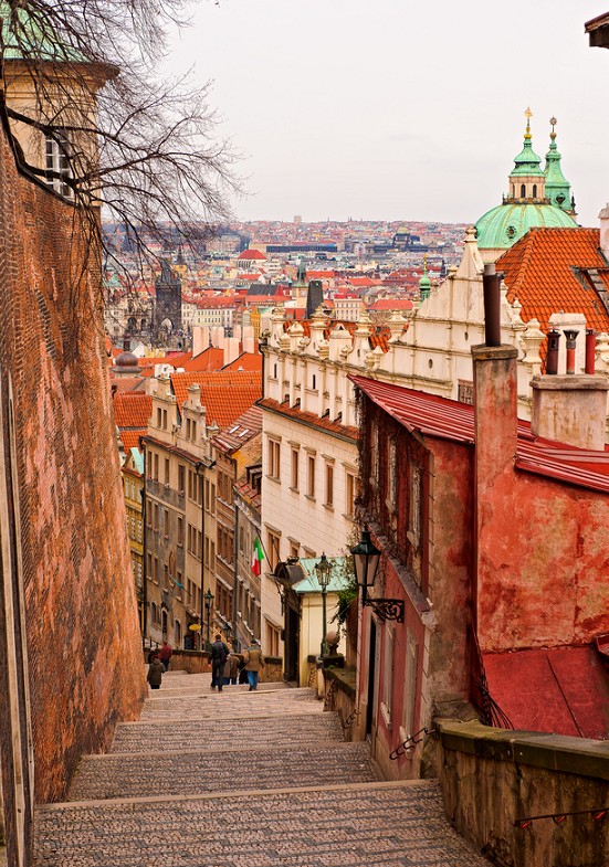 Zoals de fotografie-experts al vertelden in het eerder verschenen artikel over stadsfotografie, maak je vaak de mooiste foto’s als je gewoon af en toe de tijd neemt om om je heen te kijken. Blijkbaar heeft Tambako the Jaguar naar dit advies geluisterd, toen hij de trappen naar het Kasteel van Praag beklom. Vanuit het Kasteel heb je een wijds uitzicht over de oude stad, maar vanaf de trappen is dit minimaal net zo mooi, en het herinnert je meteen aan de lange klim naar boven.