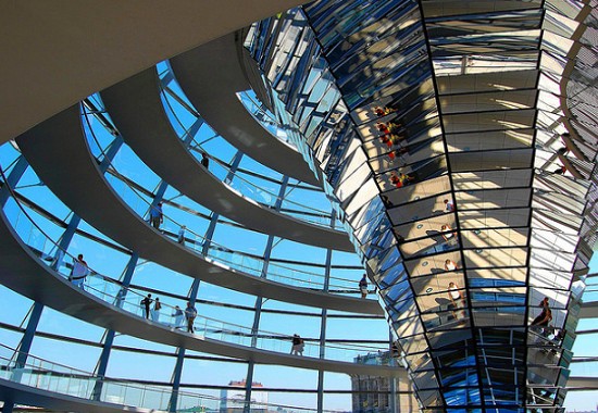 Het dakterras en de koepel van het Rijksdaggebouw in Berlijn zijn gratis te bezoeken, vanwaar je kunt genieten van schitterende uitzichten. Vooraf registreren is hiervoor echter noodzakelijk.