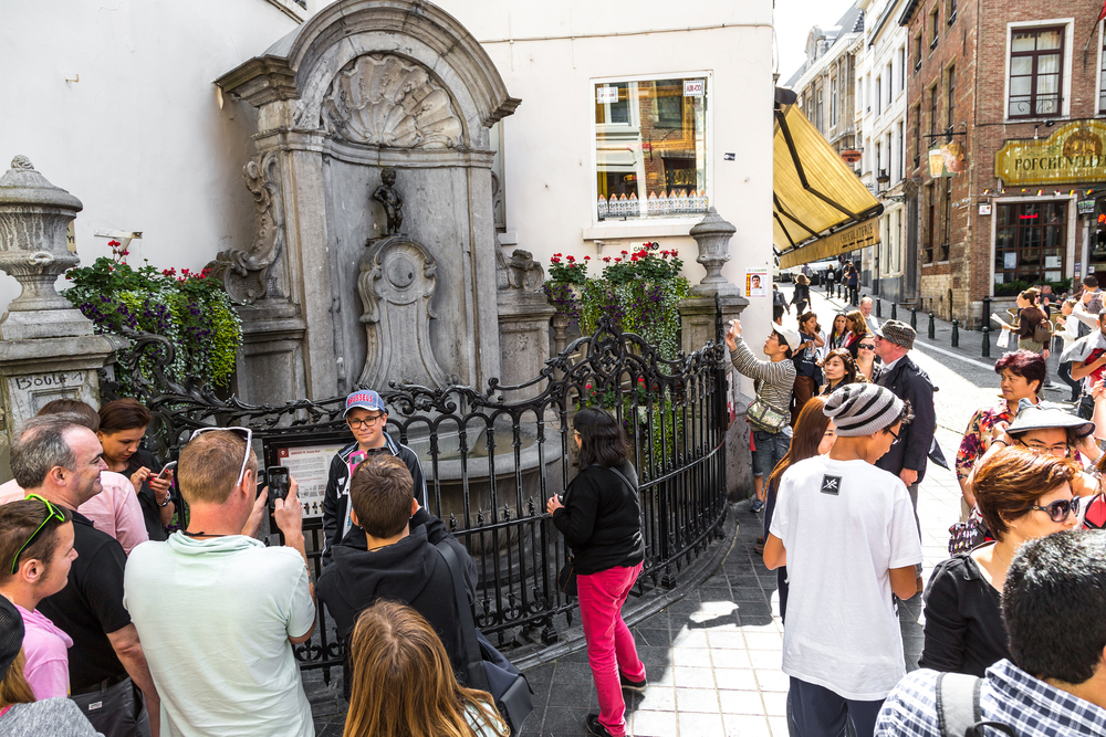 Vanwege de vele toeristen die zich om het plassende jongetje verdringen is het lastig om iets te zien zonder telelens. Dit iconische Brusselse beeld is namelijk slechts 58 centimeter hoog.