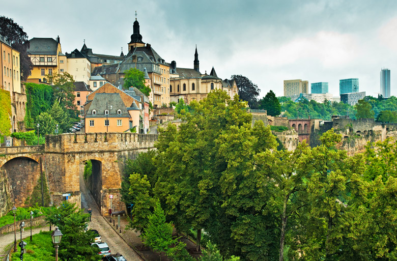 Luxemburg is net als Brussel en Straatsburg een Europese stad. Diverse instellingen van de EU, zoals het Hof van Justitie en de Europese Investeringsbank, hebben hun zetel in de wijk Kirchberg. De architectuur is imposant: hoge torens met veel glas en staal. De opvallende ronde Philharmonie is met zijn 823 witte stalen zuilen een ware muziektempel.