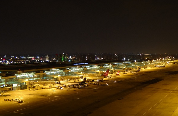 Ook ‘s-nachts staan de vliegtuigen in de rij in Istanbul, via Istanbul Airside