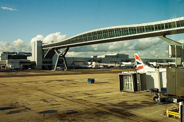 De karakteristieke loopbrug op het tweede vliegveld in Londen, via Reza Masoudi