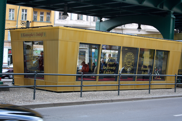 Als laatste moet je voor de beste curryworst van misschien wel heel het land naar Konnopke! Onder het U-bahn station Eberswalder Strasse vind je een klein geel gebouwtje, dat tot in de avond geopend is. Sinds 1930 vind je hier de allerbeste curryworst!