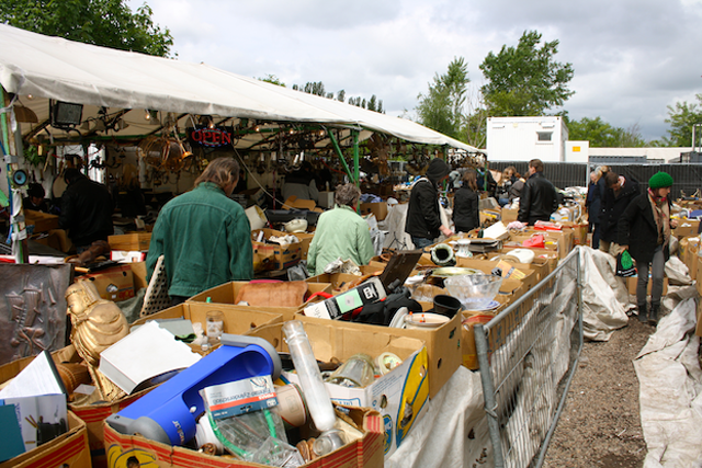 De markt in Mauerpark, zelfs schommelen lijkt er alternatief