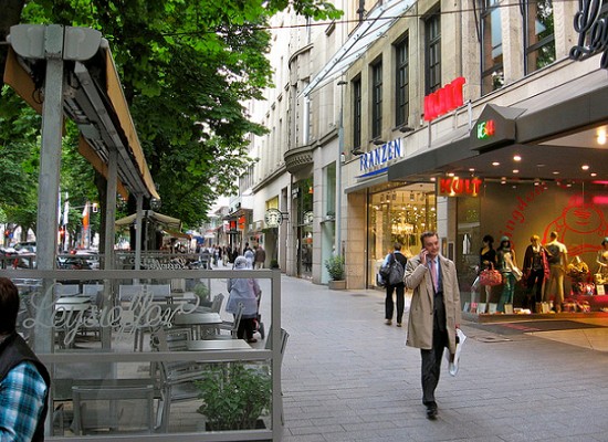 Deze winkelstraat, die ook kortweg Kö genoemd wordt, is ongeveer een kilometer lang en herbergt tientallen modehuizen, juweliers, designer stores en warenhuizen. Door de gracht, die in het midden van de Königsallee loopt, heb je soms het idee dat je gewoon in Nederland aan het shoppen bent, maar een blik op de wit beplaatte auto’s en de Duitstalige etalageborden vergeet je dit al snel weer.