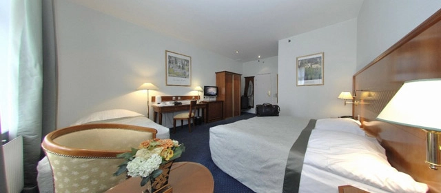 Kamers: De ruime kamers zijn klassiek ingericht met telefoon, televisie, kluisje, gratis internet en koffie- en theezetfaciliteiten. Badkamer met bad, toilet en föhn.