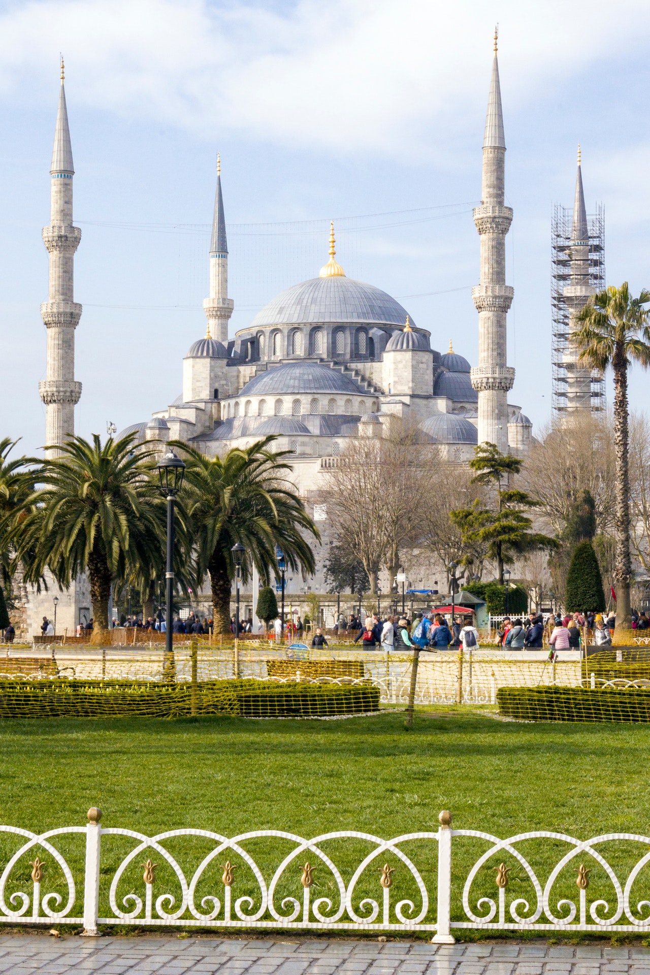 Zes minaretten staan om de 33 meter grote koepel van de Blauwe Moskee opgesteld. Deze moskee werd tussen 1609 en 1616 in opdracht van Sultan Ahmet I gebouwd.